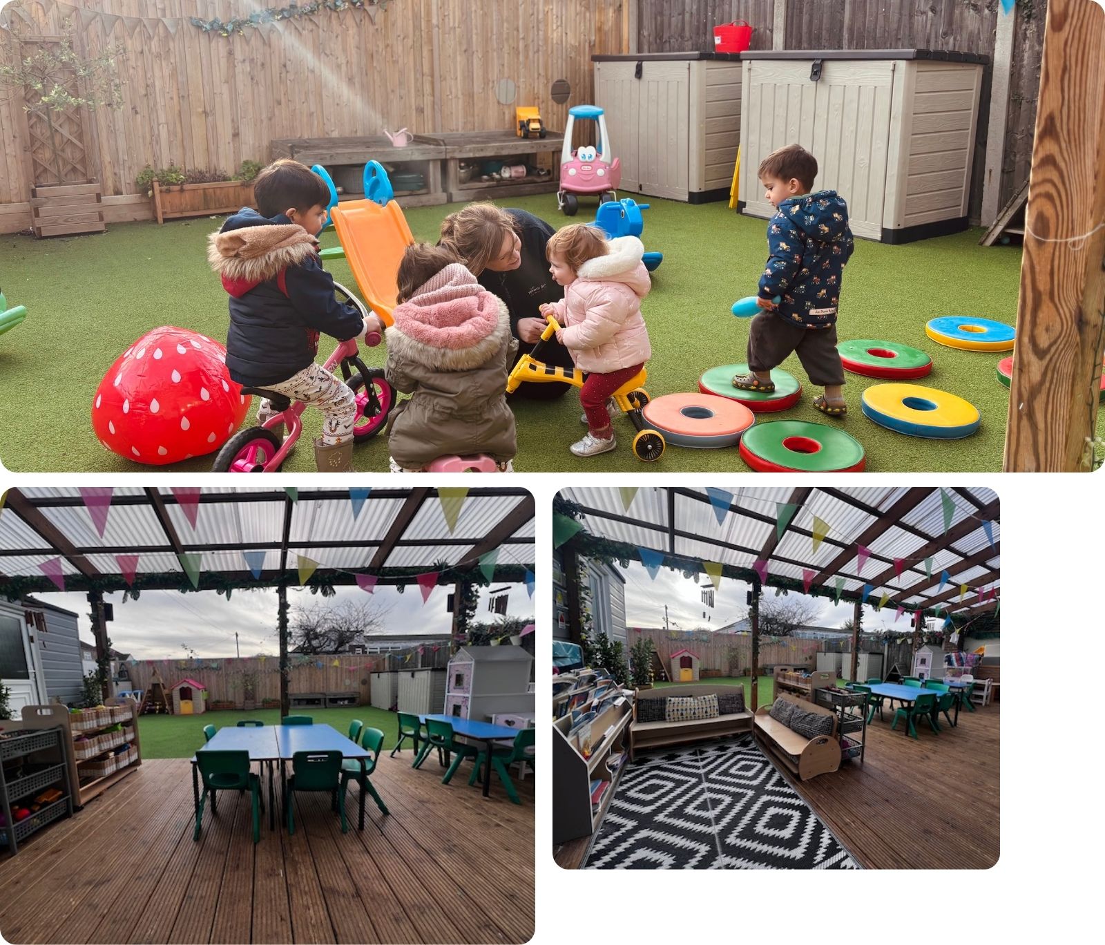 Children are taken in the garden in small groups in their base rooms and are encouraged to explore their natural surroundings, the garden area is planned as part of the daily curriculum and provides opportunities for the children to explore and develop physical skills, imaginative skills, and supports the seven areas of learning.